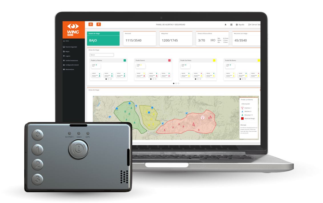 WingSecure es una solución tecnológica que permite definir y controlar los riesgos de la operación mediante medidas preventivas y correctivas, medidas inmediatas de incidencias y accidentes, visibilización de todos los recursos involucrados, cuantificación del impacto y alcance del mismo y presentación de alternativas de acción, a la que se puede acceder a través de una plataforma interactiva mediante dispositivos móviles, en tiempo real.